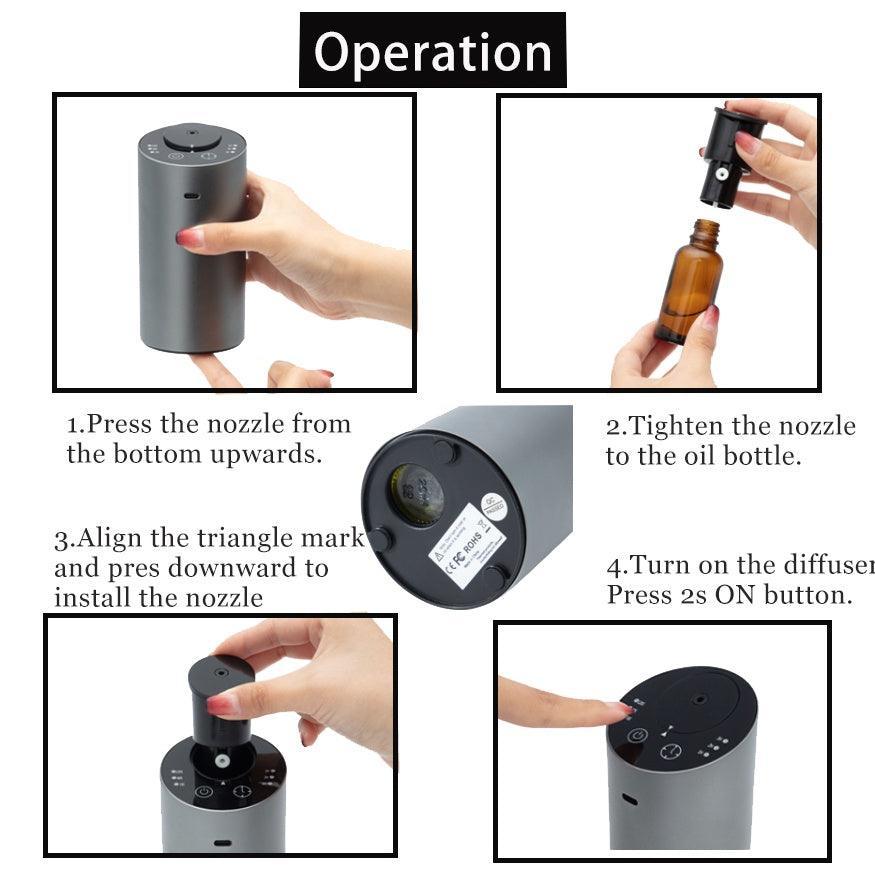 Its sleek and portable design makes it ideal, particularly when you're on the move. Utilizing only pressurized air and an intelligent dispersion system, this essential oil diffuser is the top selection for individuals seeking to savor the wonderful aroma and full health benefits of pure essential oils.